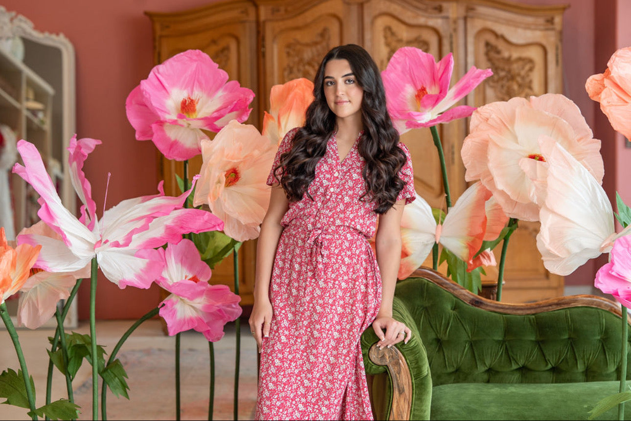 Fit-and-Flare Puff Sleeve Square Neckline Tailored Dress- White Floral