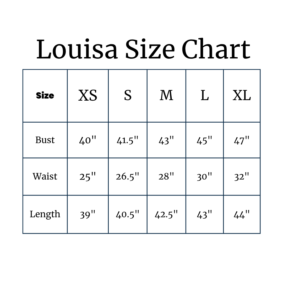 The Louisa Dress, is timeless beauty, where simplicity meets sophistication. Find your perfect fit using our size guide.