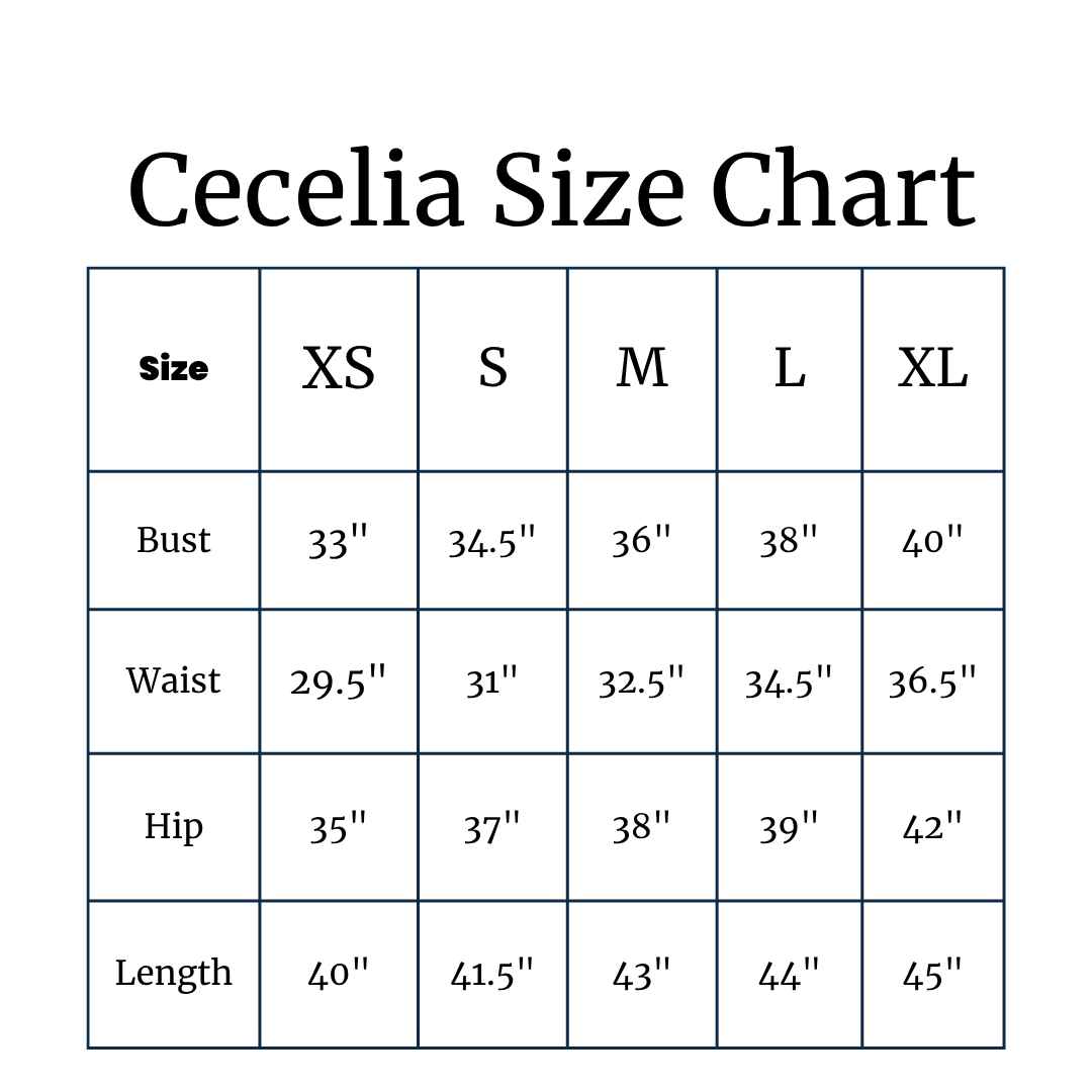 Versatile enough for any occasion or professional setting, pair the Cecelia Dress with heels for a polished look, or dress it down with flats for a more relaxed vibe. Whatever you choose to wear this classic look for, the Cecelia Dress is sure to make a lasting impression.